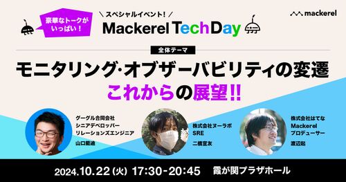 Mackerel10周年の節目に、オブザーバビリティの進化と未来を語る「Mackerel Tech Day」を10月22日に開催。技術の最前線に触れるチャンスをお見逃しなく。