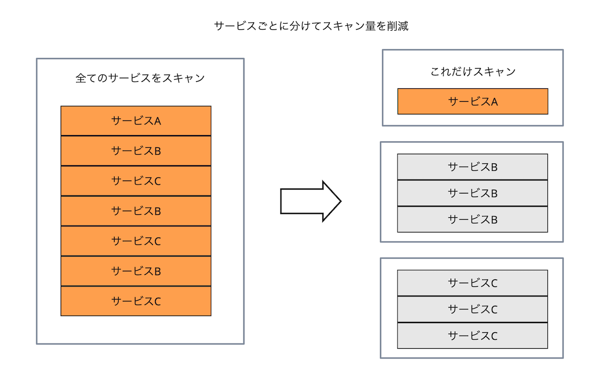 これに対応して、サービスごとに行グループを分割しています。 分割することで、特定のサービスのみを読み込めるようになっています。